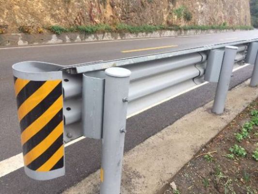 該防阻塊主要用于三波波形護欄板和圓立柱之間的連接,其安裝方式和雙波護欄板和圓立柱安裝方式相同。